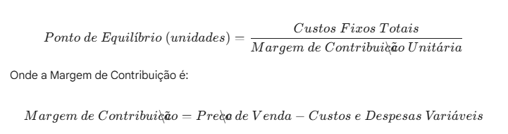 - A fórmula básica divide os custos fixos pela margem que sobra de cada venda.
